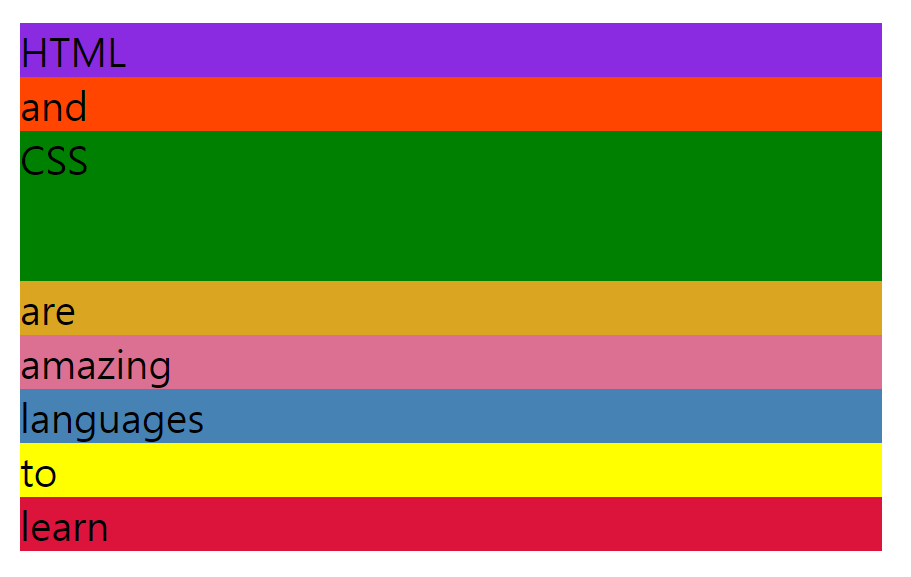 가로로 각 요소들은 텍스트 콘텐츠에 필요한 공간을 정확하게 차지한다. 그러나 세로는 가로와 다르다. 기본적으로 세로의 경우 모든 플렉스 항목의 높이는 가장 높은 요소의 높이가 된다.