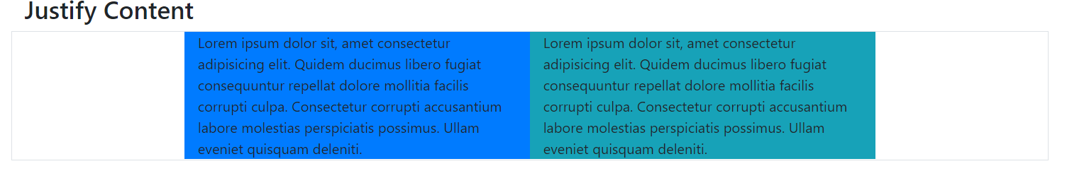 justify-content-center을 사용하여 가운데 정렬을 만들었다. justify-content-between을 입력하면 가운데 공간을 만들고 박스들은 양 옆으로 간다. 스타일 시트를 손댈 필요없는 장점이 있다. 이 유틸리티 클래스는 각기 다른 화면 크기나 중단점에 대해 변형할 수 있다.