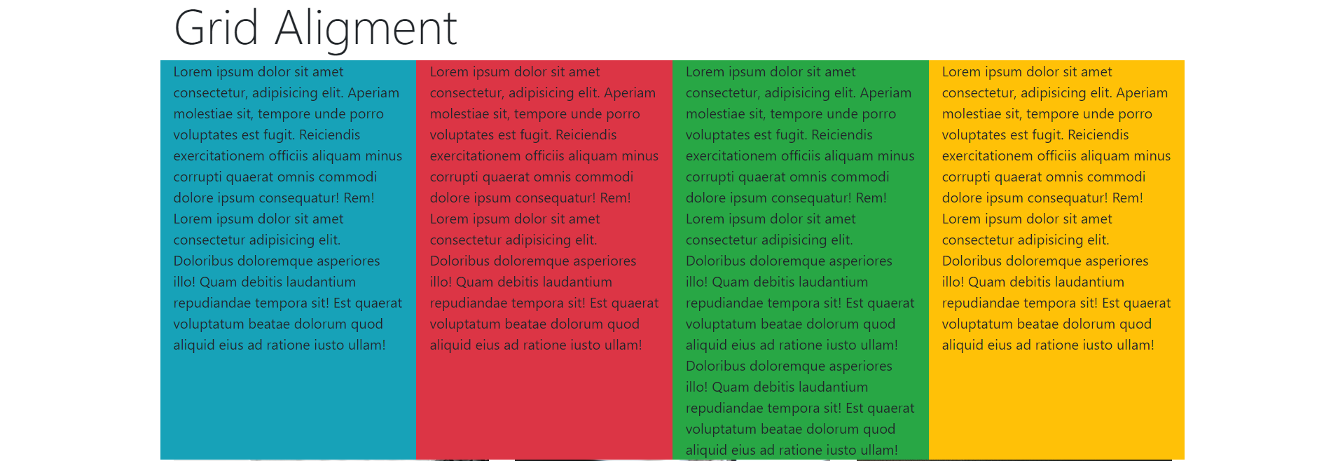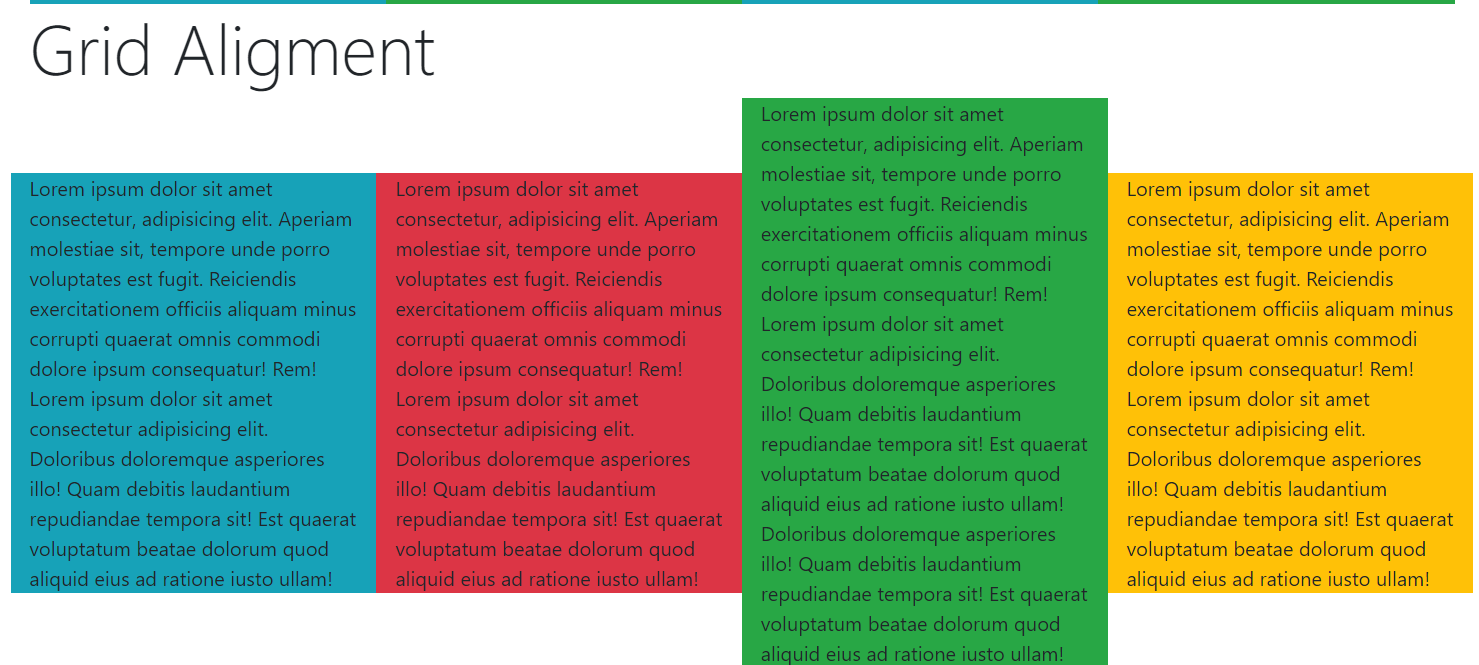 다른 박스들도 초록색 박스만큼 높이가 커져있다. 다른 박스들의 더미텍스트 만큼의 크기를 하기 위해 "align-items-end"를 작성하면 된다.