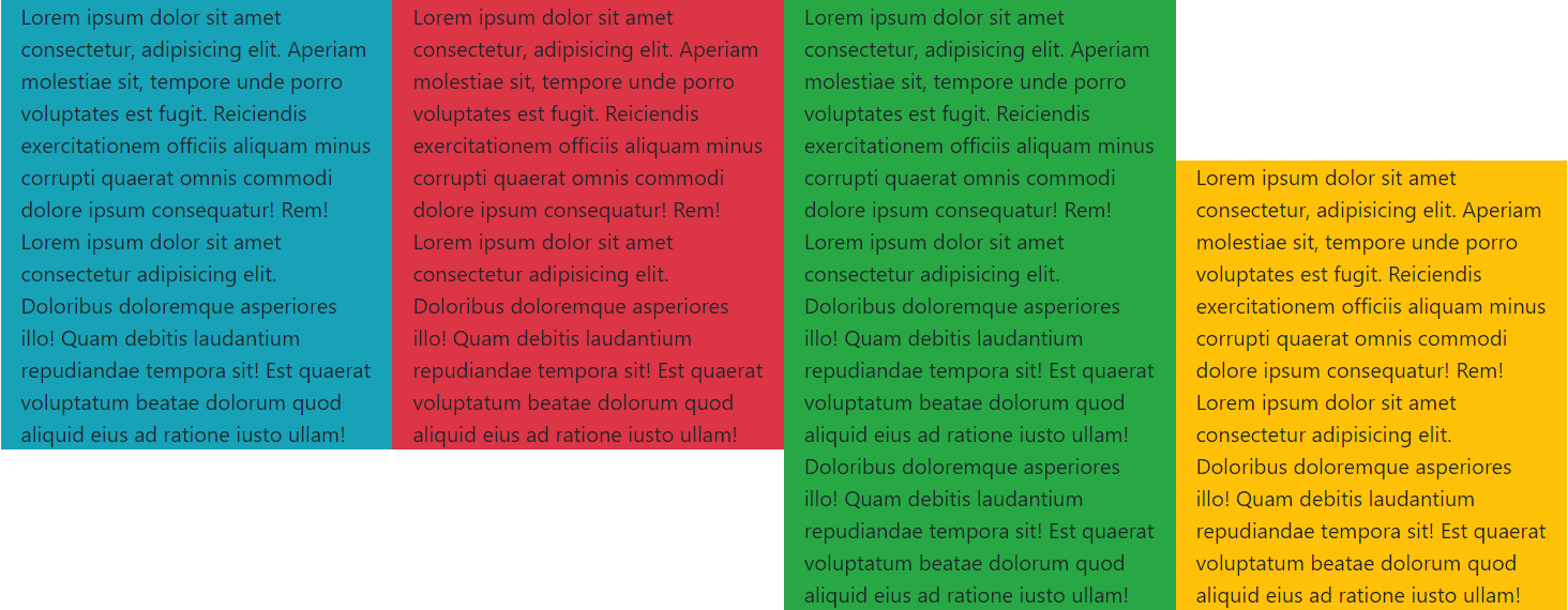 <div class="col-md-6 col-xl-3 bg-danger">Lorem ipsum dolor sit amet consectetur, adipisicing elit.
