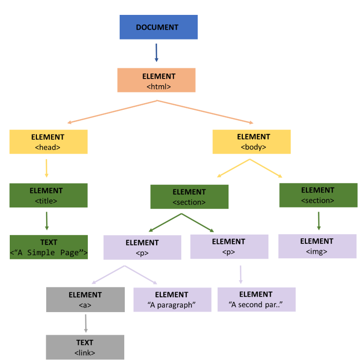 이런 나무 구조물에 저장한다. 이 트리에서는 각각 HTML 요소가 하나의 개체이다.