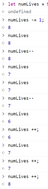 (만약 numLives -= 4;로 입력하면 4씩 줄어들 것이다.)
