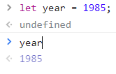 그러면 나중에 스크립트에서 year라는 단어를 언급하며 JS가 1985라는 숫자를 저장해 놓은 것을 볼 수 있다.