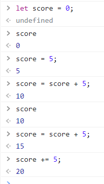 score의 값이 입력될때마다 5값이 더해지도록 했다. (+말고도 -, /, * 가능하다.)