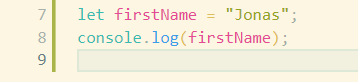 8번째 줄로 부터 firstName인 Jonas 값을 출력 받았다. 7번째 줄까지 변수 선언이 작동했다. 자바스크립트가 firstName의 변수를 볼때마다 Jonas 값으로 대체된다. 이름을 바꾸고 싶다면 값을 적은 Jonas를 바꾸면 된다. Lisa로 바꾸고 싶다면?