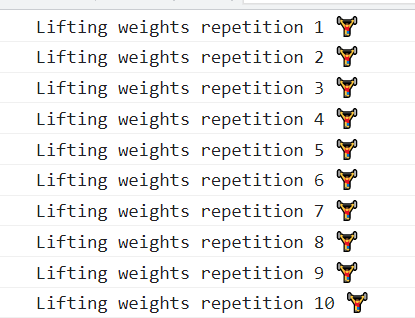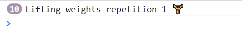 console.log("Lifting weights repetition 10 🏋");