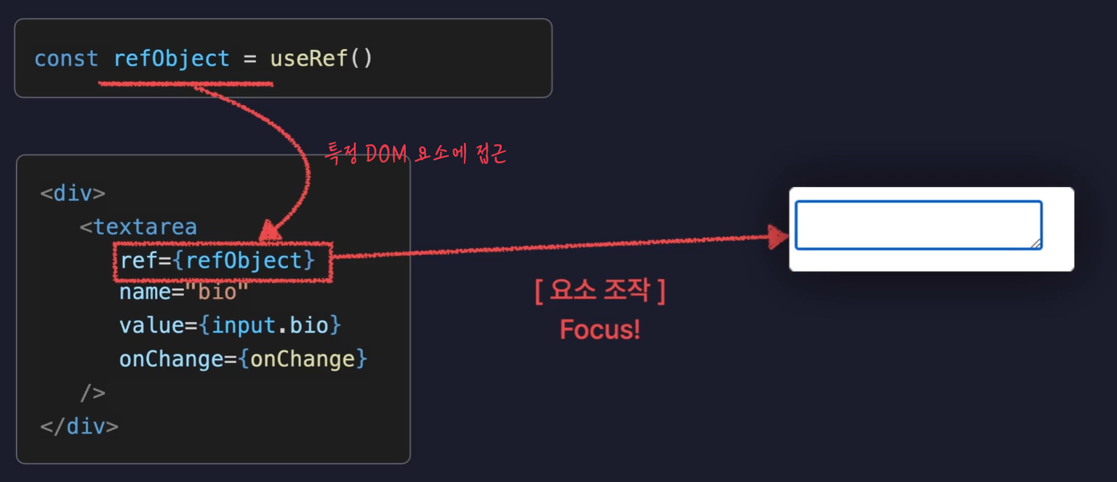 {/* 레퍼런스 객체를 사용하여 input에 접근 */}