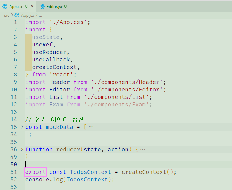 - 루트 컴포넌트로서 TodoStateContext.Provider와 TodoDispatchContext.Provider를 자식들에게 공급함.