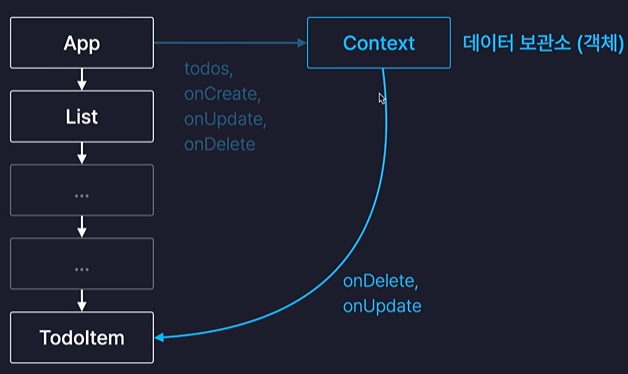 - 내부의 TodoItem이 onUpdate, onDelete를 쓰므로 TodoDispatchContext도 필요.