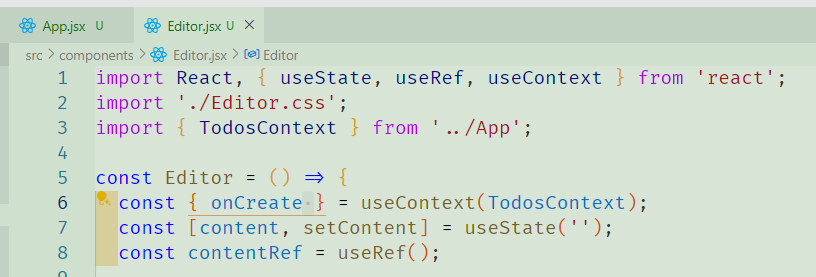 vscode에서 이 editor 컴포넌트로 부터 이 context로부터 제공받는 값을 바꿔볼 수 잇도록 해보겠다.