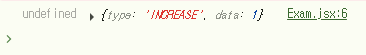 +버튼을 누르면 큰솔에 값인 0과 action이 호출되는 것을 볼 수 있다.