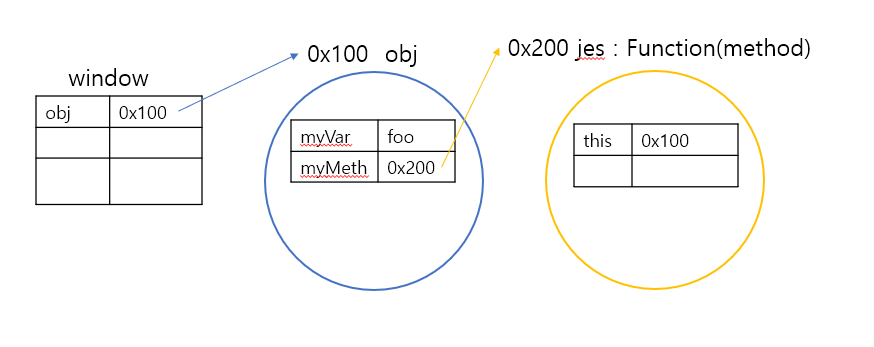 윈도우에 obj객체가 생긴다. -> myVar가 foo라는 메서드가 생기고 -< function 객체가 생긴다.