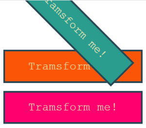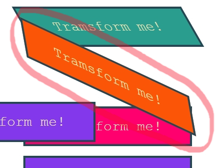 skew(10deg, 25deg)입력을 하니 초록색 밑에있는 주황색 네모가 기울어졌다.