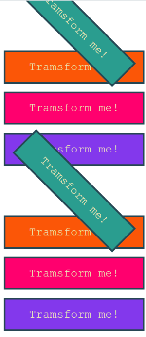 변형 함수는 콘텐츠나 요소에 상관없이 적용가능하다. 예를 들면 <h1>에서 버튼이 있다면? css설정에 맞게 세로로 늘어났다.